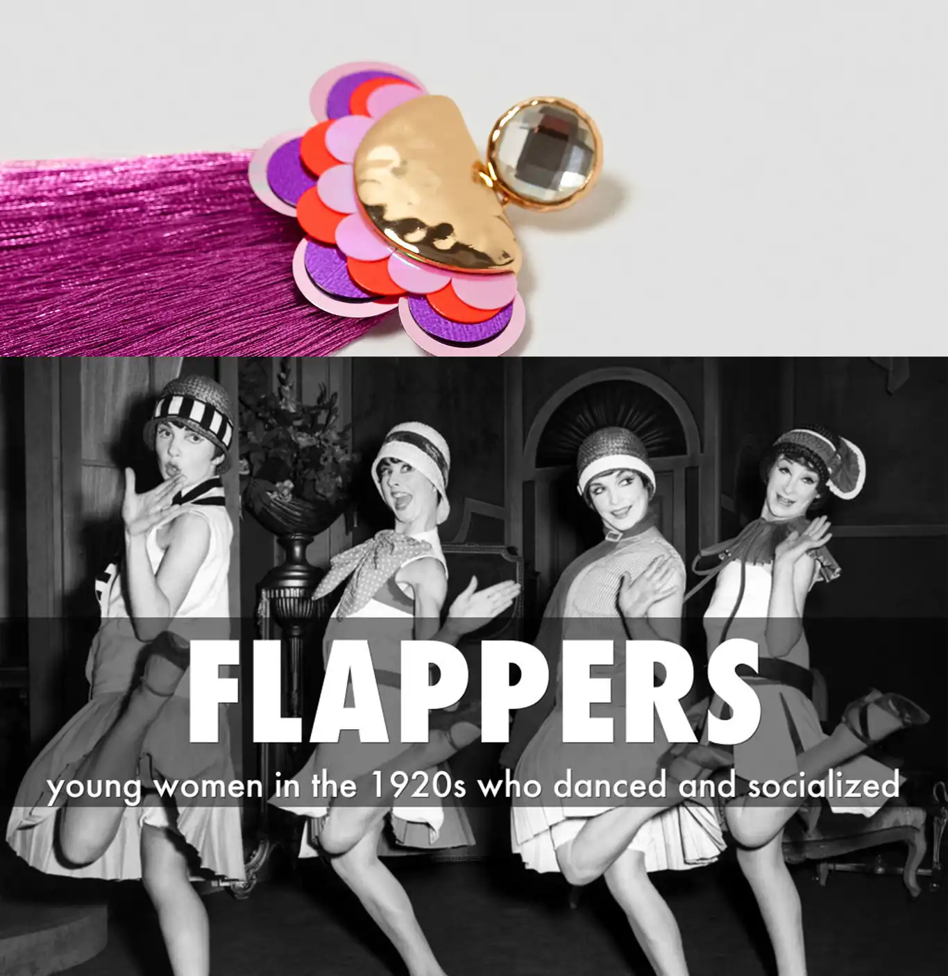 Diseño branding y naming de Flapper, una tienda de pendientes de flecos. Este trabajo fue para un curso de Diseño gráfico que hice en 2018. Flapper En los años 20, «flapper» era un término utilizado para referirse a mujeres jóvenes que desafiaban las normas sociales y culturales de la época, especialmente en cuanto a su apariencia y comportamiento. Eran mujeres que adoptaron un estilo de vida más moderno y liberado, marcado por la independencia femenina. Además pusieron su estilo era muy característico; bailaban jazz, Llevaban el cabello corto (bob cut), faldas más cortas de lo habitual y con flecos, usaban maquillaje de manera más visible y se alejaban de los corsés tradicionales.