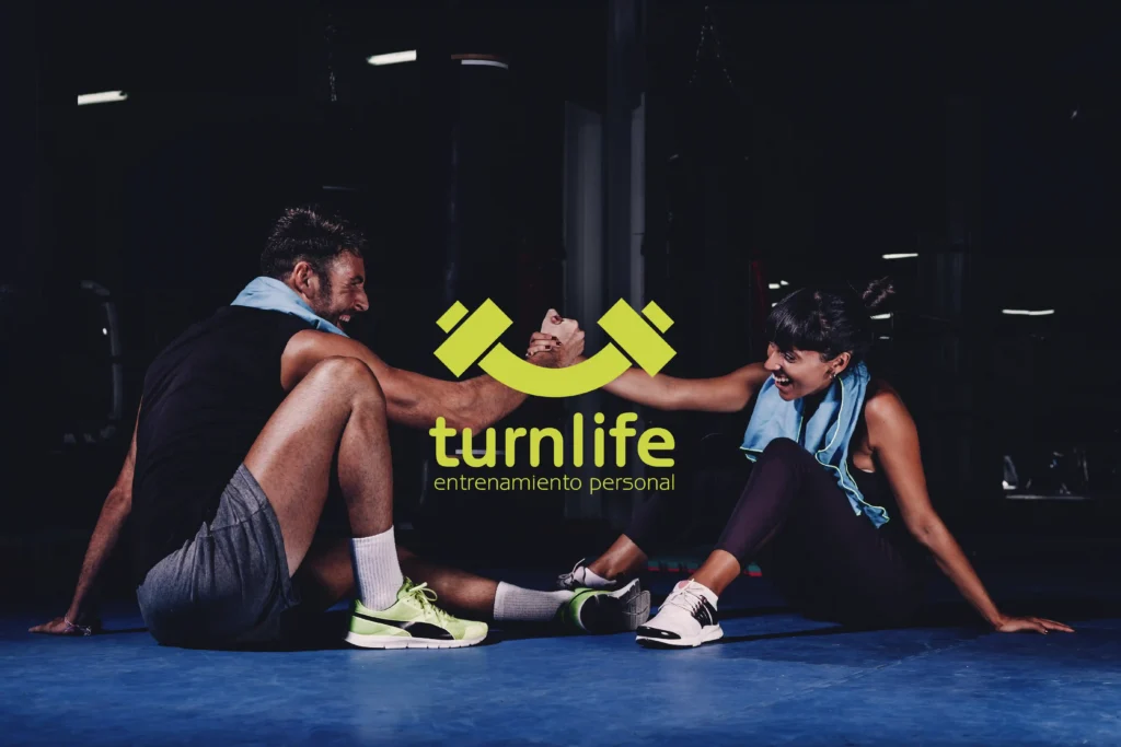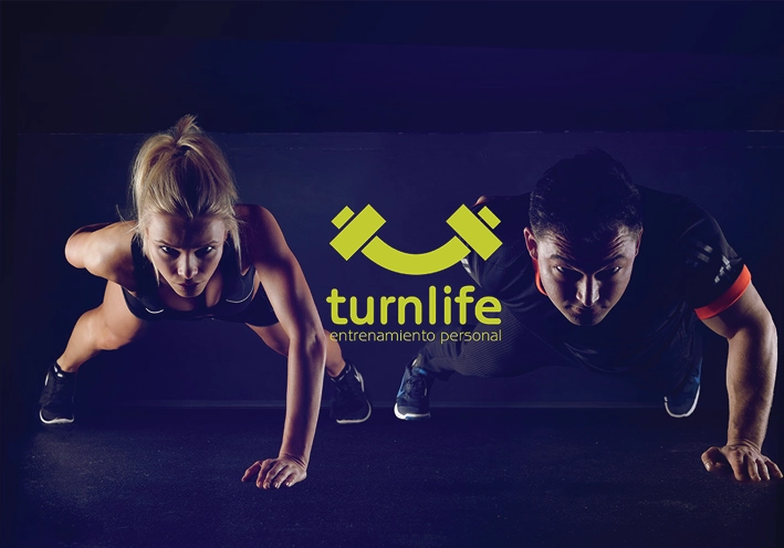 Diseño de branding y naming. Proyecto diseñado para una monitora extrovertida, profesional, alegre y con energía. Todo esto quería expresarlo con la marca, por ello dibujé una mancuerna con forma de sonrisa y turnlife, viene de darle una vuelta o giro a tu vida. Una marca con un expresión muy positiva.